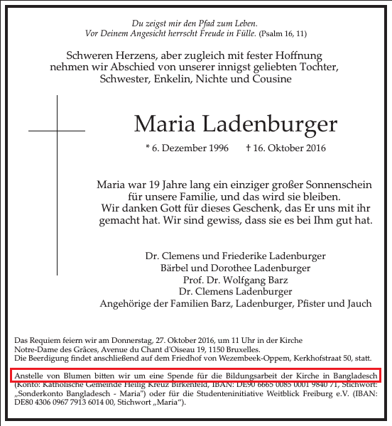 Apparently Dr. Ladenburger solicited donations for illegal Muslims in Germany at his defiled daughter’s funeral: